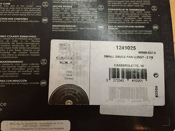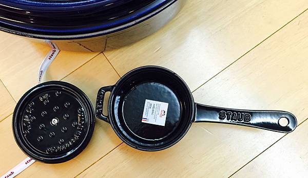 登楞!還好吾友的摯友很好心的在買刀具之餘 幫我去百貨公司看看有沒有特價 答案是...Fissler沒有! 但Staub有些款式有特價 比較起來 跟Amazon上面差不多 最後我估摸了很久之後 終於選定了兩款Staub 一個 31cm的橢圓鑄鐵鍋 一個是Mini Saucepan 0.25qt 的醬汁鍋